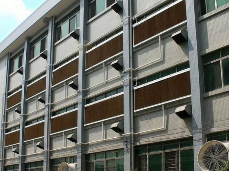 2.降溫水簾系統(tǒng),對車間外空氣二次制冷進入車間降溫。車間安裝負壓風機的對面或者側面墻壁的窗戶上安裝降溫水簾系統(tǒng),把進入車間內(nèi)的補充空氣經(jīng)過降溫水簾二次降溫,變成溫度更低的空氣被負壓風機強行引入到車間內(nèi)降溫,此方法與負壓風機配合使用降溫效果好,需要注意的是水簾降溫系統(tǒng)空氣的量和速度要足夠補充車間內(nèi)高溫悶熱空氣排出的量和速度,而且要做好車間的密封,盡量保證進入車間的空氣經(jīng)過降溫水簾系統(tǒng)。