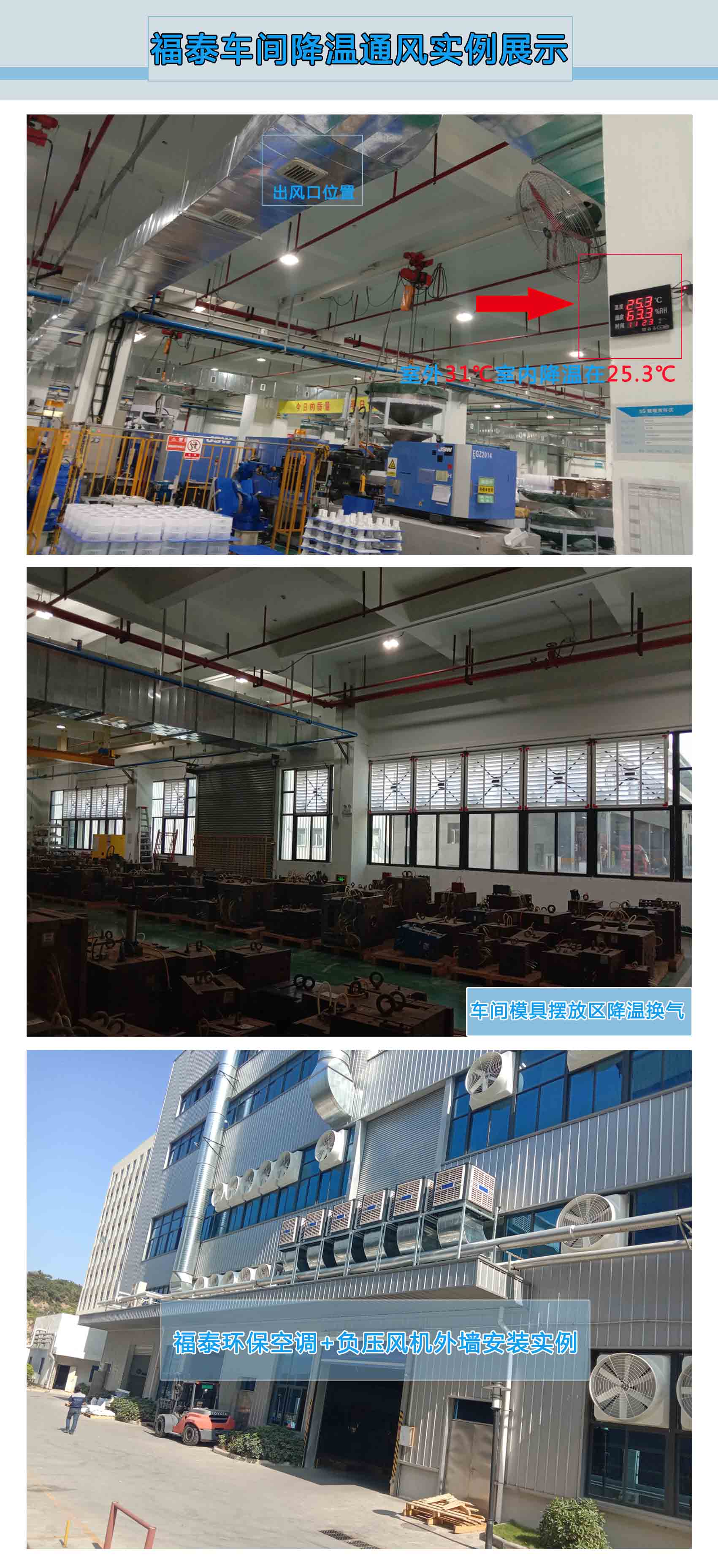 工廠用的行業(yè)比如:電鍍廠降溫,塑膠廠降溫,橡塑廠降溫,模具廠降溫,制衣廠服裝車間降溫等等都用了這種水蒸發(fā)降溫的水空調(diào)啦!你還在等等嗎?