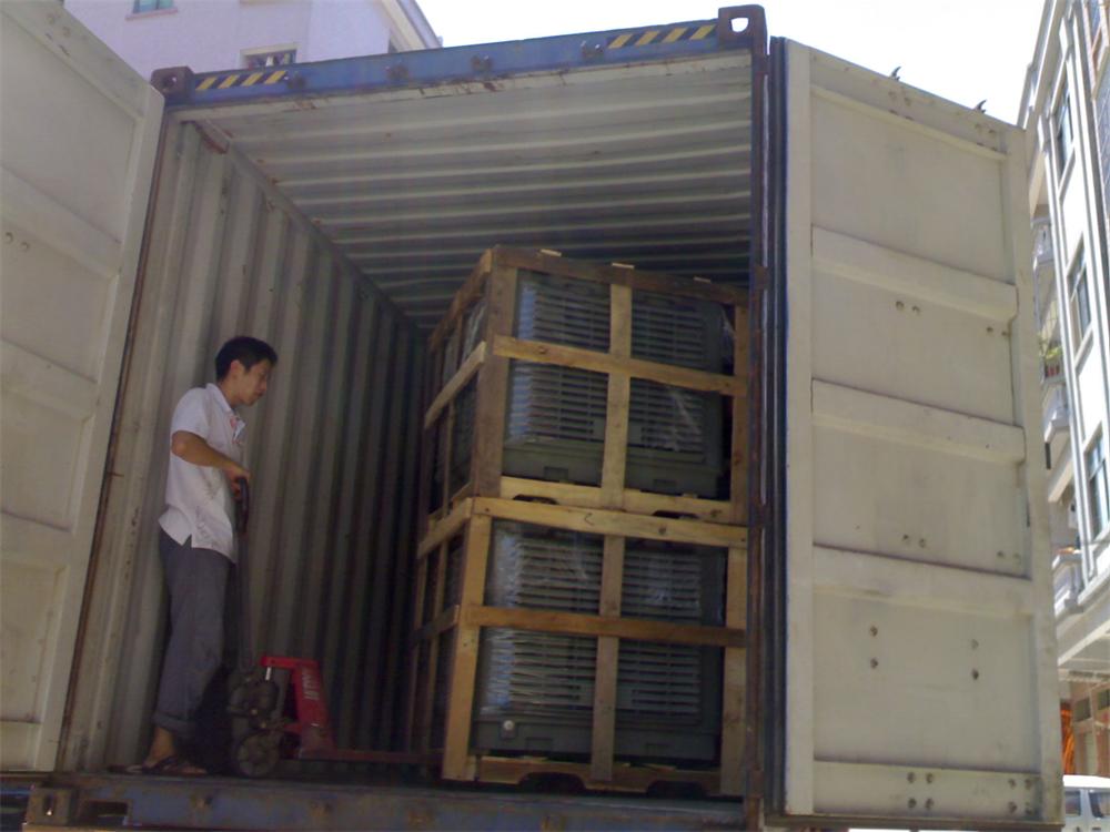 2、如果是內地的客戶們就必須要用打木架來運輸,木架方式必須要包圍住環保空調的四周。以免在運輸過程壓損壞。