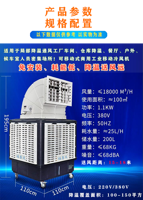 車間大,工人少,這種環境用哪種降溫設備更劃算呢?推薦你用工業移動式環保空調,無需安裝,插電即用,送風距離最遠可達20米,每小時用電還不到一度,最主要的是價格還特別便宜。了解更多車間省錢降溫方案吧。