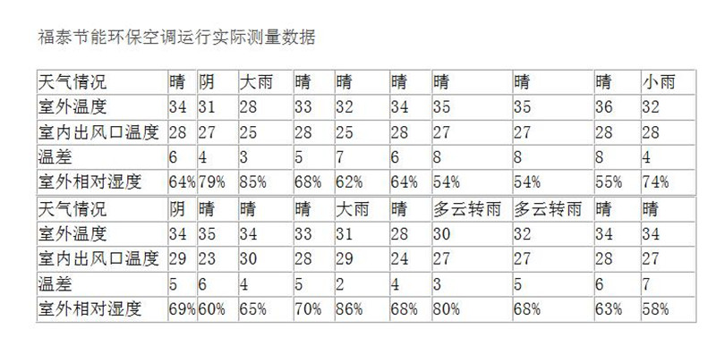 一開始為什么叫他節能環保空調呢!因為相比傳統空調它是傳統空調的1/8的投入費用,而且覆蓋面積也比較大,所以它被稱為節能環保類空調,但是如果把它叫空調它還欠缺了一點恒溫的能力,因為它不可以設定指定的溫度畢竟沒有壓縮機和氟利昂的運作所以降溫效果比傳統空調弱了,所以如果你的車間需要恒溫這個環保空調可能達不到你的要求了,那么有人會問它能降溫多少呢? 這個問題好,通過福泰的跟蹤和研究發現它的降溫就在2-10度左右不等的數值。