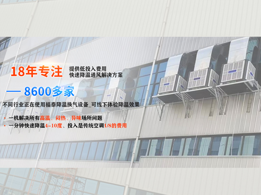 如果您的車間也存在高溫悶熱、頂樓熱、車間發(fā)熱源多、人員密集、粉塵空氣質量不好現象,可以咨詢福泰16年以上的降溫策劃顧問給你免費策劃降溫方案和預算供你參考讓你的車間涼爽一夏,告別悶熱的煎熬。