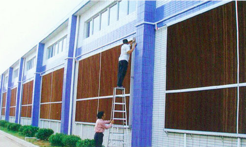 工業(yè)廠房車間夏季降溫用負(fù)壓風(fēng)機(jī)濕簾系統(tǒng) | |