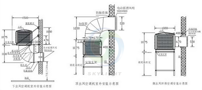 環保空調的特點: 1、節能:每小時耗電量僅0.4-1度,運行成本低,耗電量只有傳統 壓縮機空調的1/8。 2、環保:無氟利昂,集除味、換氣、通風、降溫、調節溫度于一體。 3、降溫效果明顯:一般可達4℃-15℃的降溫效果,且降溫迅速。 4、覆蓋面積大,送風量距離遠。 5、投資少、效果大(可以節省中央空調80%的投資款)。 6、使用場所可以不閉門窗,可確保空氣流通,增加空氣中的含氧量。 7、智能或手動排污清洗功能。 8、安裝便捷、維護方便。 經過我們專業的角度去算車間的換氣,節能環保空調可以為你解決悶熱、異味的煩惱,如果你用風扇和中央空調都不可能完美的解決這一問題。風扇達不到制冷,換氣通風的效果,吹出來的風是熱的,也就說裝風扇在南方的天氣是做不到任何的改善的,用中央空調成本費用高,電費也是個昂貴的數字,也不能做到換氣和通風的作用,因為中央空調是負壓,門窗都是封閉的。空氣是不流動的。也就是制冷解決了,但異味無法解決。所以我給各位廠商推薦的福泰節能環保空調即可以做到通風、換氣、制冷的作用。如果就長遠考慮是個明智的選擇。 環保空調安裝方式