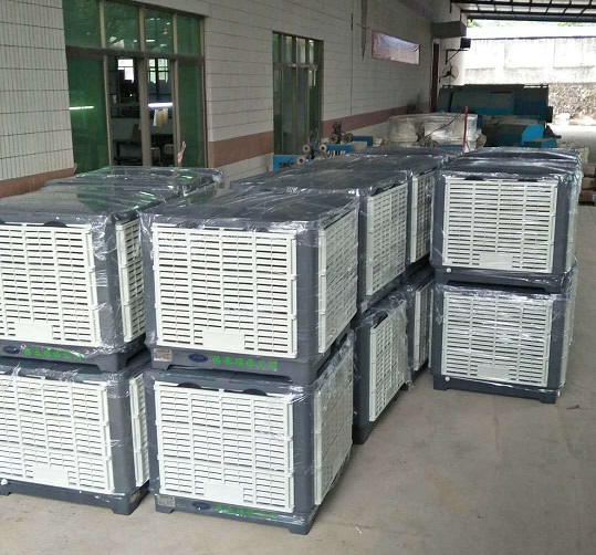 2、機械控制或液晶顯示,帶過壓/欠壓保護、缺相保護、缺水保護自動/手動清洗,自動開關機功能; 3、銅芯電機、鑄鐵外殼,重量比大、啟動和運行穩定可靠; 4、環保空調的三片低噪音尼龍風葉適用于噪音要求較高場所,直接送風15米。 5、全新料改性共聚PP工程塑料外殼(自主開模),防老化,使用壽命長; 6、蒸發水簾,降溫效果好、帶塑料包邊保護水簾,使用壽命長; 7、敞開式分水盤布水系統,淋水均勻暢順。